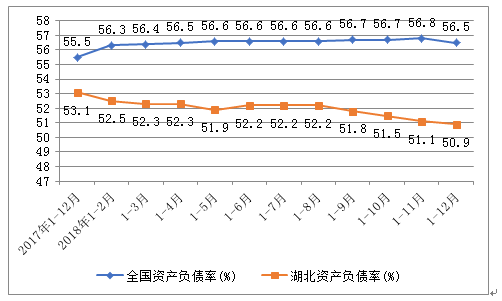 图3 全国和湖北各月累计资产负债率