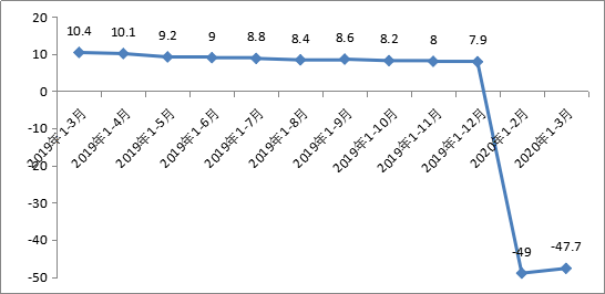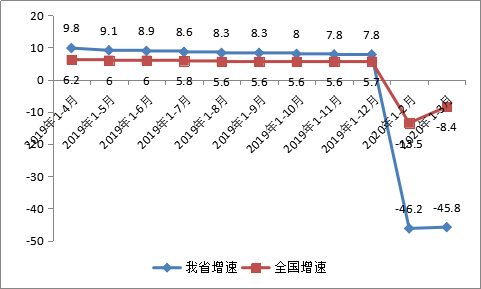 重点行业逐步恢复。一季度,全省41个大类行业中38个行业出现较大幅度下降,26个行业降幅超过50%。一是防疫及保障类行业恢复较快。纺织、医药、农副食品加工行业增加值同比下降48.2%、42.1%、52.3%,降幅分别环比收窄9.6、3.5、5.3个百分点。二是“停不得”行业降幅相对较小。钢铁、有色行业增加值同比分别下降27.8%和39.4%。三是汽车、电器等重点行业恢复偏慢。汽车、电器机械、通用设备行业增加值分别下降56%、62.4%、59.9%。