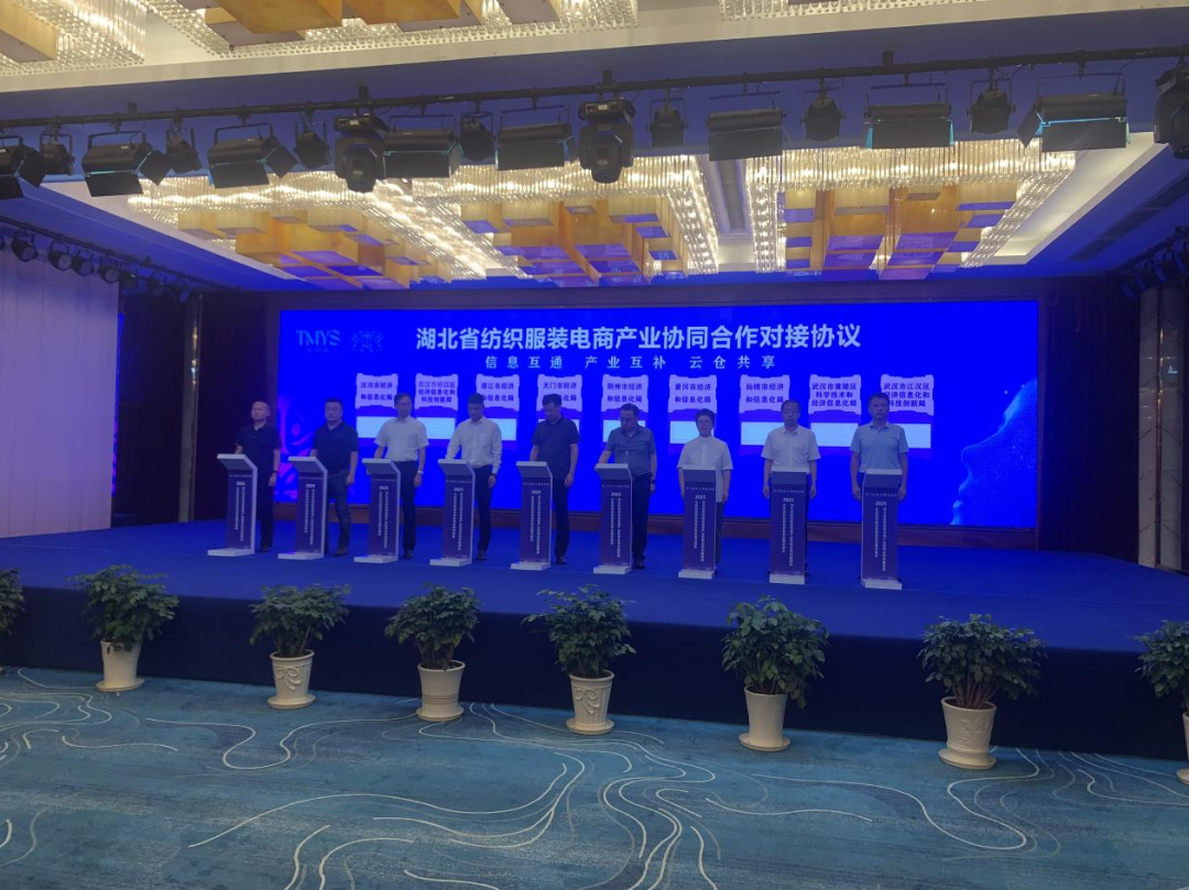 天门市委常委、副市长曾令慧,武汉纺织大学副校长、研究生院院长王栋出席会议并致辞;天门市电商行业协会、天门现代纺织产业技术研究院分别介绍天门市服装电商发展及技术创新情况;华纺链、长江云纺链分别作供应链平台介绍;天门市、荆州市、黄冈市、仙桃市、潜江市、黄陂区、硚口区、江汉区、汉川市经信局分别介绍纺织服装电商产业发展情况并发布需求信息,共同签订纺织服装电商产业协同发展合作协议;各地参会企业现场开展交流对接。