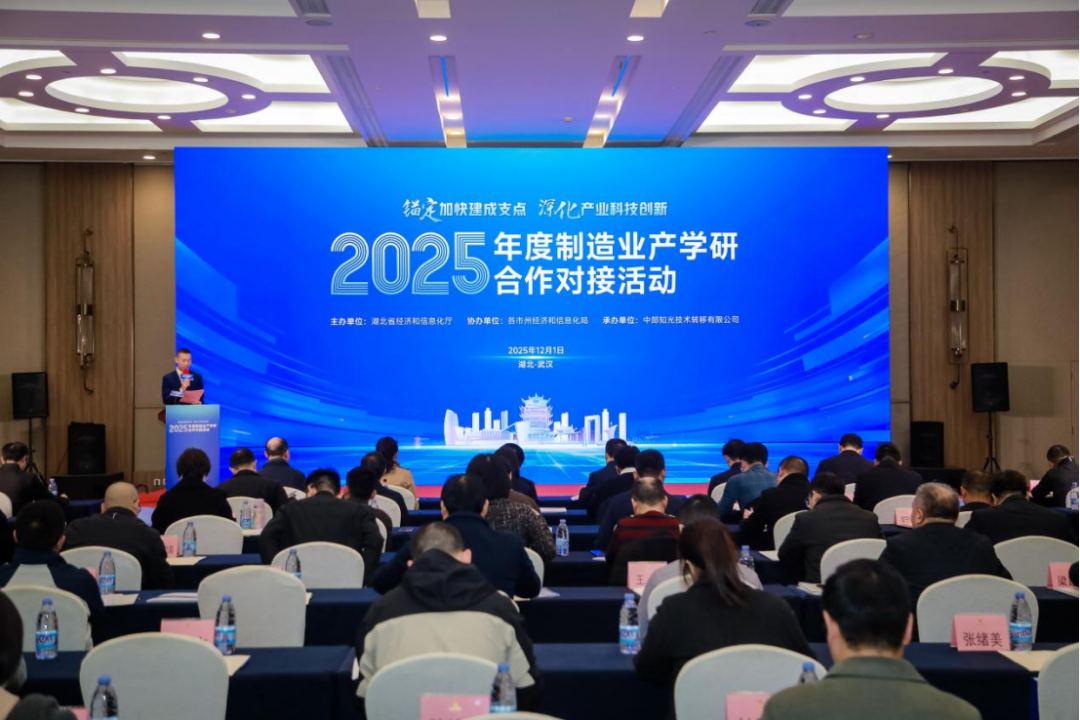 12月1日,2025年度制造业产学研合作对接活动在武汉成功举办。此次活动以“锚定加快建成支点,深化产业科技创新”为主题,通过签约授牌、工作部署、经验分享、座谈研讨等多元举措,搭建起精准高效的协同对接平台,推动科技创新和产业创新深度融合,为湖北加快建成中部地区崛起的重要战略支点、“十四五”圆满收官与“十五五”谋篇布局筑牢坚实支撑。厅党组成员、副厅长郭波出席活动并讲话。