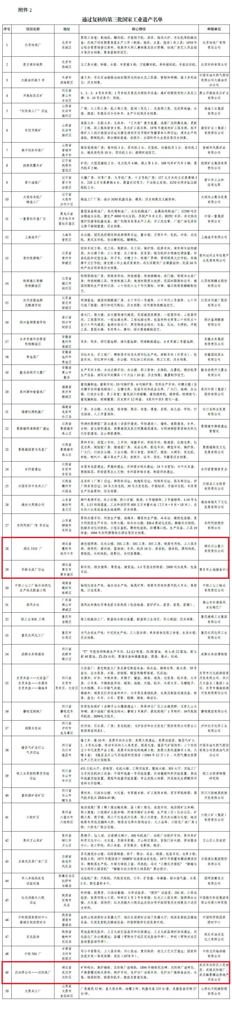 2.通过复核的第三批国家工业遗产名单