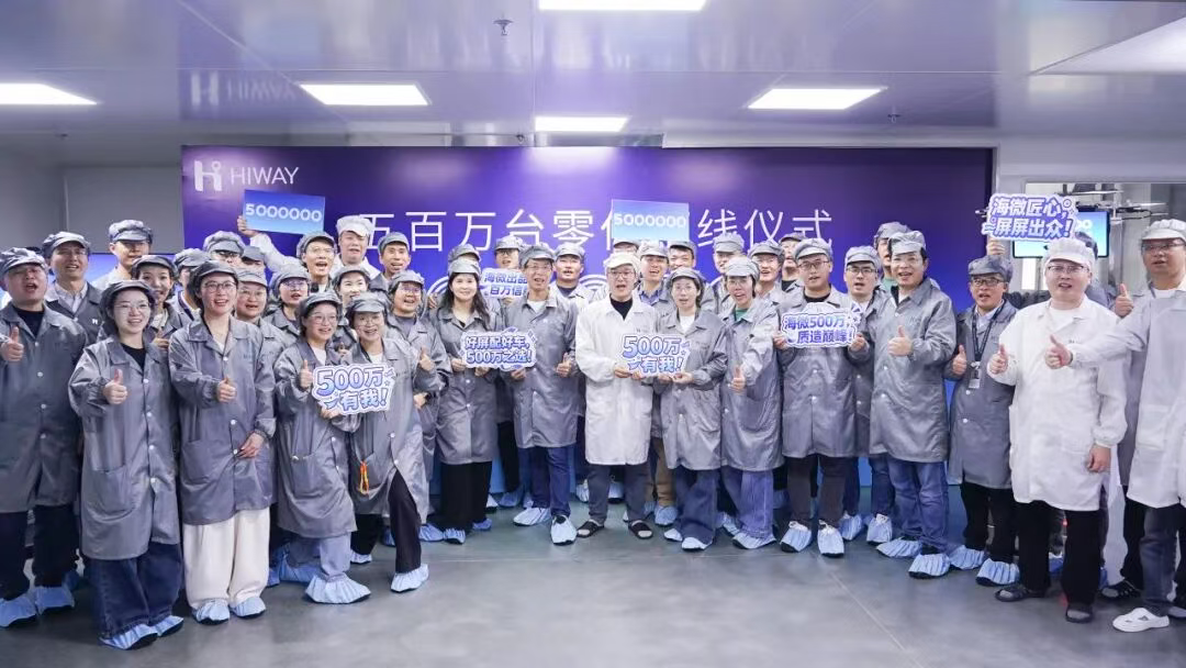 日前,国内智慧座舱领域知名企业——武汉海微科技股份有限公司(以下简称“海微科技”)第500万台零部件产品——21.4英寸Mini LED吸顶屏在东湖综保区海微智造工厂下线。