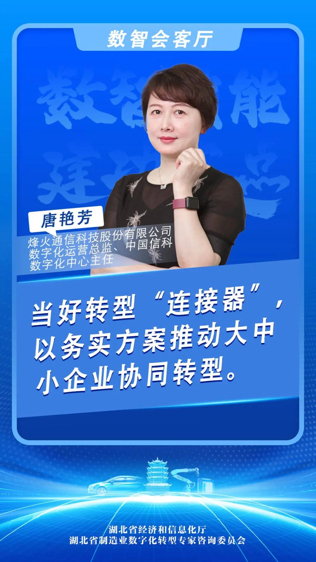 当前,湖北省制造业数字化转型进入关键阶段,链主企业如何发挥引领作用,成为破局的重要一环。中国信息通信科技集团(以下简称“中国信科”)作为省电子信息产业链主企业,其数字化转型路径与赋能实践,为上述命题提供了具体样本。中国信科数字化中心主任、烽火通信数字化运营总监唐艳芳接受专访,围绕转型本质、赋能路径与产业协同等话题,阐述了务实思考。