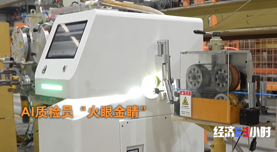 车间里,有着“火眼金睛”的“AI质检员”上岗。它的内部3台工业相机形成360°无死角监测,能在光缆以200米/分钟的速度奔跑时,锁定0.1毫米级的6类缺陷,识别能力是人类肉眼极限的20倍,检测成功率达99.99%。