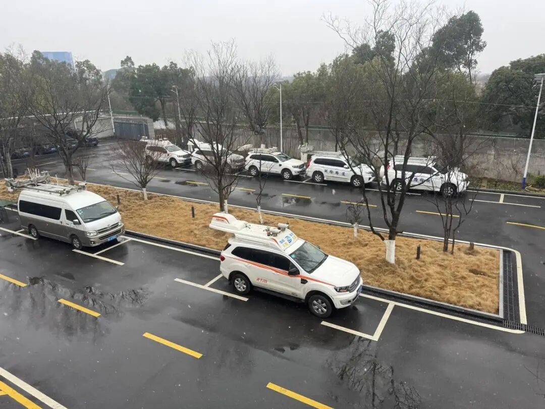 路和路达智能交通科技有限公司内,十余辆不同功能的公路巡查检测车整齐停放。