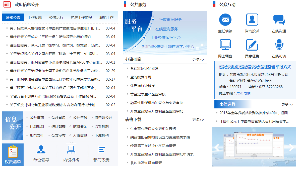 一是充分发挥我委门户网站信息公开主渠道作用。加强门户网站的建设和管理,将门户网站打造成及时、准确、公开透明的政府信息发布平台。拓展网站互动功能,通过主任信箱、在线沟通等方式,接受公众建言献策和情况反映,征集公众意见建议。完善网站服务功能,及时调整和更新网上服务事项,确保公众能够及时获得便利的在线服务。二是加快推进“一库四平台”项目建设(即:行政权力库、行政权力及服务事项运行平台、电子监察综合平台、行政权力法制监督平台、行政权力网上公开及服务平台),推行权力网上阳光运行。